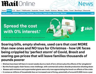 Soaring bills, empty shelves and a 'perfect storm' heading our way that will leave families "thousands of pounds poorer", the paper reported.