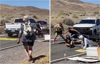 Police wield guns and ram into climate protesters in Nevada