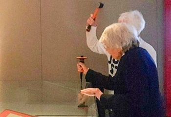 Reverend Sue Parfitt, 82, and Judy Bruce, 85, smashed the glass around the historic document before gluing themselves to it.