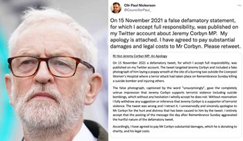 Tory councillor to pay ‘substantial damages’ to Corbyn