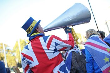 The anti-Brexit campaigner disrupted a fringe meeting outside the conference’s secure zone in Manchester city centre.