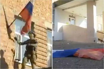 Ukrainian soldiers tear down Russian flags as Kursk incursion continues