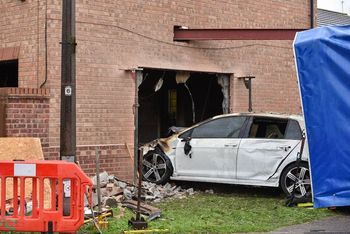 A high-performance sportscar was recovered from the side of a house today (Tues) after it dramatically crashed through a wall and injured a man sat on his sofa. The white £20,000 VW Golf R was pulled from the dented three-bed semi after creating a picture-postcard snap of a Grand Theft Auto (GTA) video game stunt. A white VW Golf R is removed from the house it crashed into in York, which left one man seriously injured and three other people...