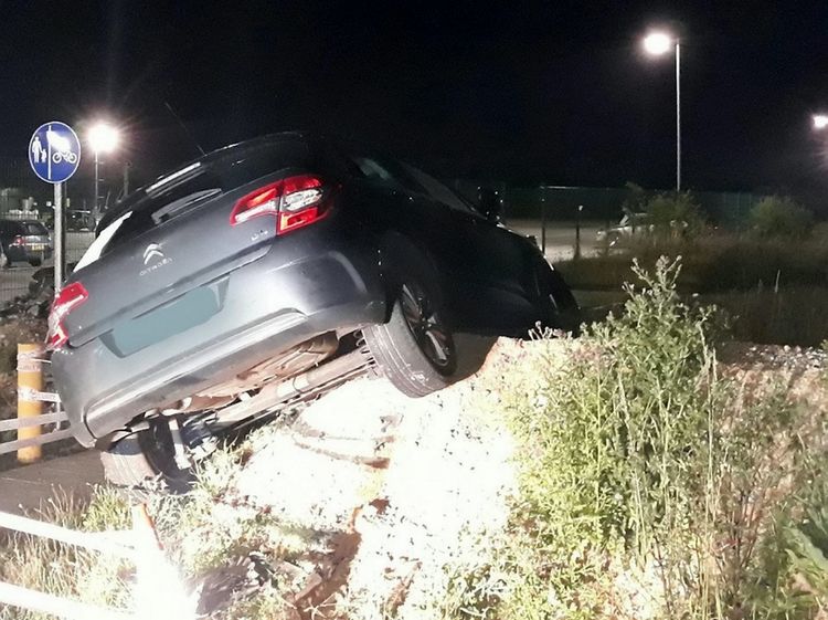 Cops say the driver lost control of the Black Citroen C4 after mistakenly believing the car park was the A46.