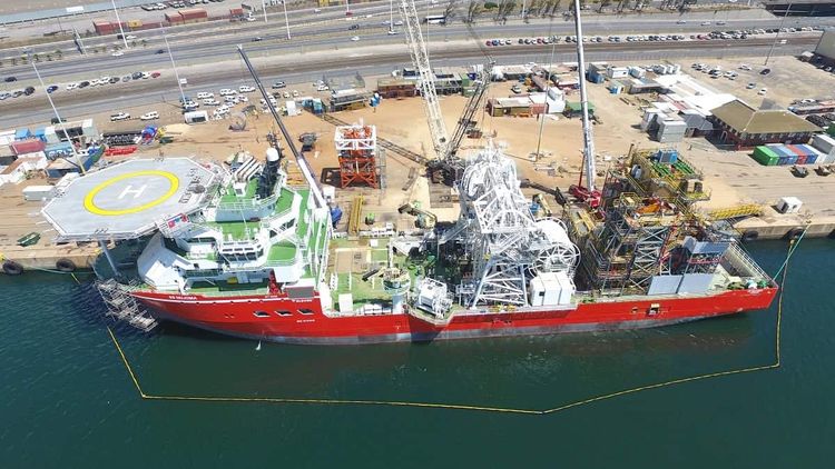 The mv SS Nujoma – named after Namibia’s founding president – was constructed in Ulsteinvik, Norway and fitted with its subsea sampling system, designed by De Beers Group, in Cape Town, South Africa.