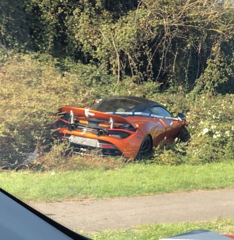 Video footage shows the orange McLaren 720s left stranded in a hedgerow alongside a dual carriageway in Bradley Stoke, Bristol.
