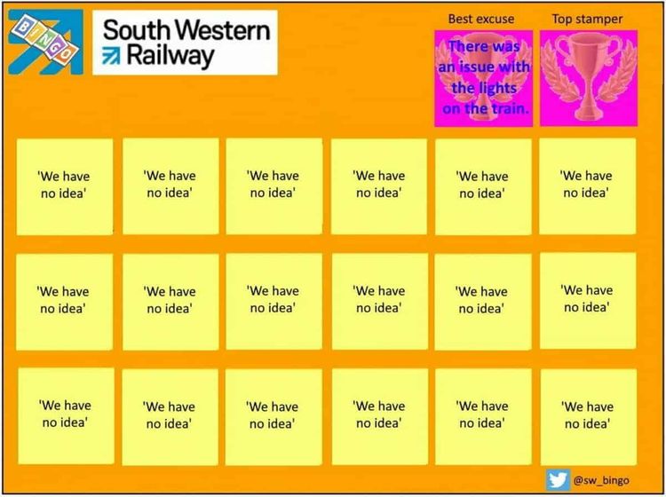 A long-suffering London commuter has set up ‘railway BINGO’ for train passengers – including a list of excuses for late services.